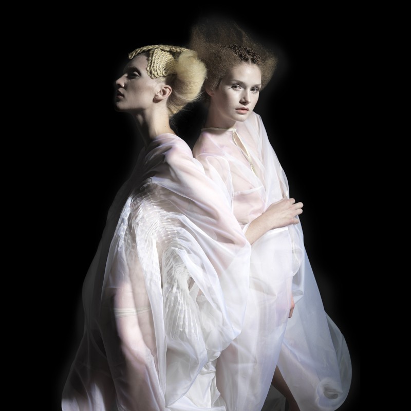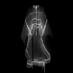 In the dark, phosphorescent materials that are emerging and textile objects recreate the accumulated light. Dress outfits of their own light and express a fleeting and supernatural halo.