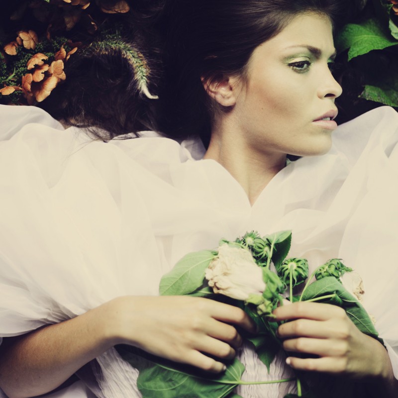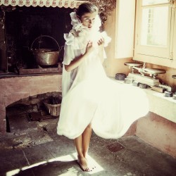 Silk chiffon dress with maxi ruffled collar in silk organza.