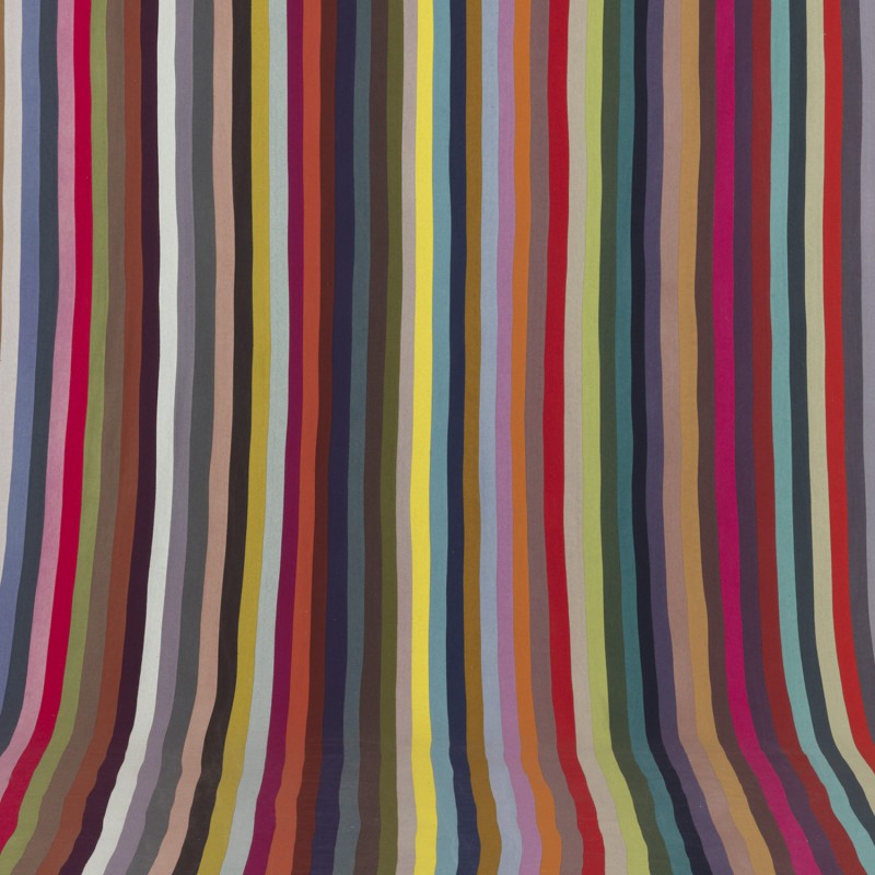 Silk noil hangings for home. 54 color strips are assembled to form a textile panel. Ideal for home decoration and upholstery. Dyed and made in Lyon, France.