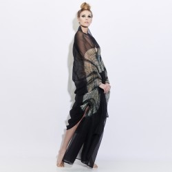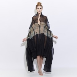 This accessory is designed for versatile use, with a passage for the head and two openings for the forearms placed in the folds. The pleats are held together by elastic threads. The organza is a nervous and crunchy fabric that allows to create beautiful volumes. For a chic and graceful look we advise you to wear below a monochrome and fitted outfit, for example: a straight dress, a leotard, cigarette pants or leggings.